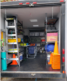 The newest MCARES mobile trailer, dubbed “The Beast”, has been outfitted with most of its gear. Nate still has work to do on the electrical and solar panels but otherwise it is now usable. The Beast has space for two operators and equipment to work all bands and all modes. It also has several go kits that can be used for satellite stations, cross-band repeating, or digipeating as needed. The trailer is a great asset and really expands our field capabilities.